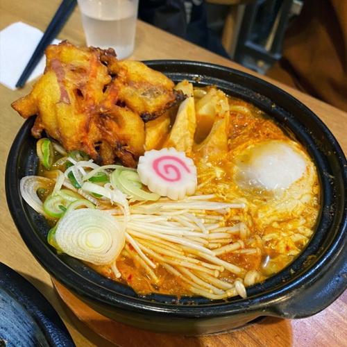 얼큰한 김치와 쫄깃한 면발, 튀김의 고소한 기름 맛이 잘 어우러져 해장용으로도 좋은 메뉴입니다. 사이드 메뉴인 온센타마고고항 (온천계란밥)에 쯔유를 넣고 먹으면 우동만으로는 양이 부족하신 분들도 포만감을 느낄 수 있습니다.