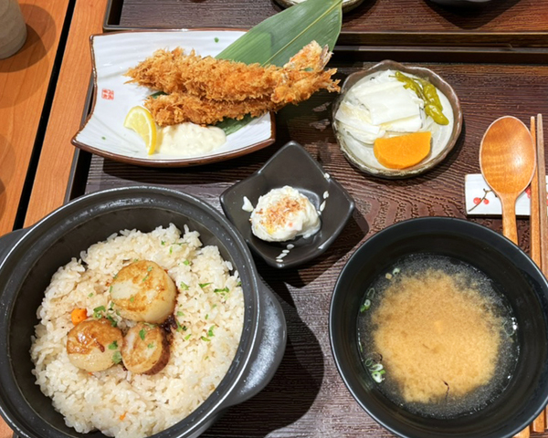 - 메뉴 : 가리비 타키코미고항, 채끝 스테이크 덮밥, 치킨 카레라이스, 특제 로스카츠